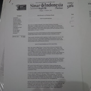 Kliping Tulisanku: Hati Nurani VS Perkara Perut (Koran Harian Sinar Indonesia Baru - Medan)